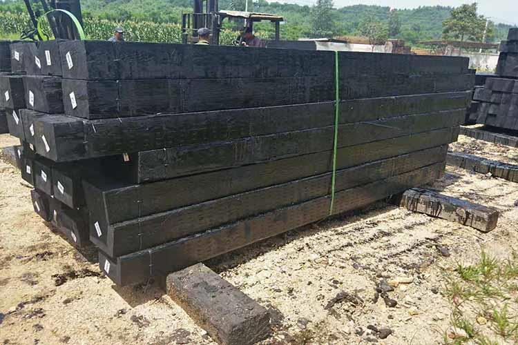 2、防腐枕木鋪設(shè)使用時,建議施工前應(yīng)做好防裂措施,一般方法為采用枕木端頭鐵線捆扎或打釘竹釘鈑工藝處理,枕木在鋪設(shè)施工中,打進道釘作業(yè)前,需要采用直徑略小于道釘直徑4-6mm的鉆頭,在確定打進道釘?shù)奈恢眠M行事前鉆孔,鉆孔深度應(yīng)小于打進道釘長度20-30mm,防止枕木漲力過大開裂,造成產(chǎn)品持釘力下降或產(chǎn)品報廢,施工作業(yè)應(yīng)避免單根產(chǎn)品超負(fù)荷使用,謹(jǐn)防折斷。